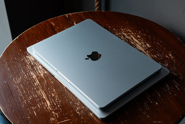 - Дизайн и расцветка. Внешне MacBook Air 2025 практически не отличается от моделей с чипами M2 и M3. Единственное заметное нововведение — расцветка Sky Blue. Сам цвет выглядит хорошо, но Apple стоило бы больше экспериментировать с оттенками. При определенном освещении Sky Blue становится практически неотличим от обычного серебристого MacBook.