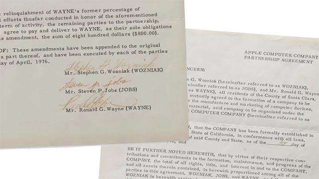 Оригинал соглашения, составленного перед созданием компании Apple Computer Company в 1976 году, будет выставлен на аукцион. Ожидается, что документ продадут примерно за 4 миллиона долларов.